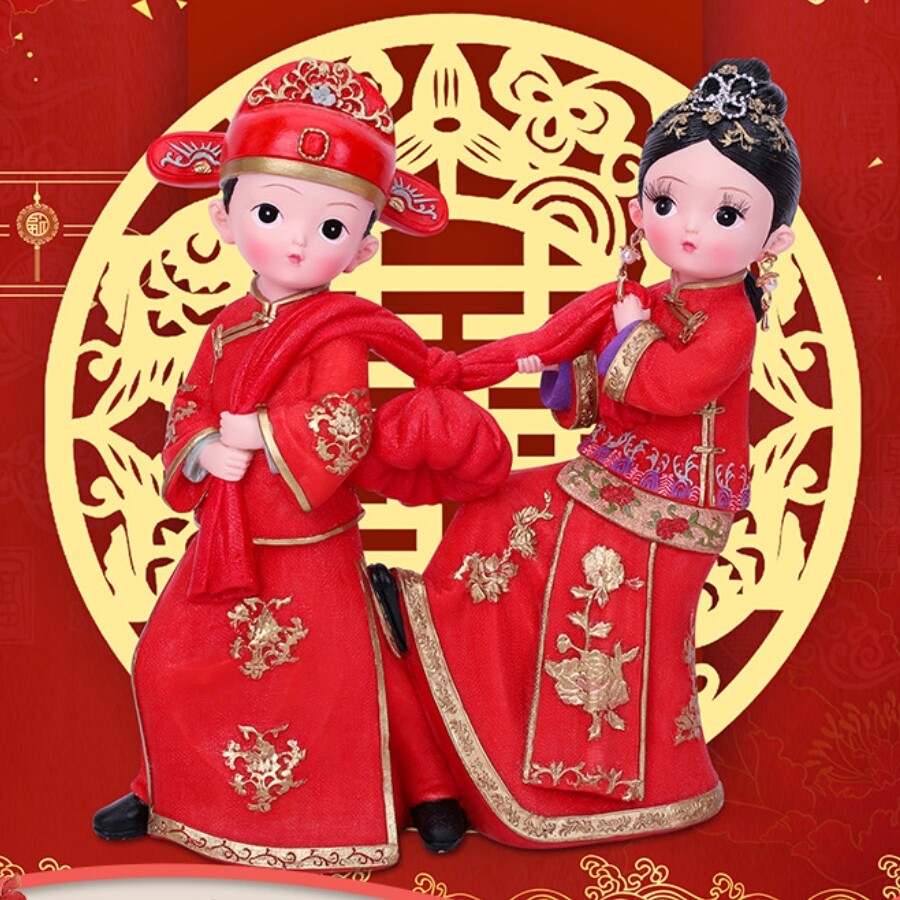 婚庆娃娃新婚结婚礼物摆设树脂中式摆件百年好合礼品婚房家居装饰