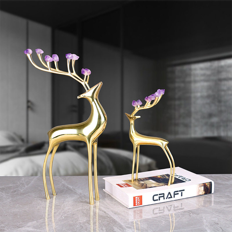 轻奢纯铜鹿摆件紫水晶石鹿角样板间电视柜婚庆礼物软装家居装饰品