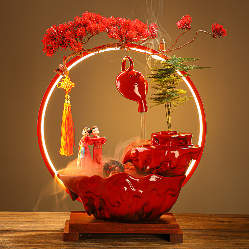 创意婚庆流水摆件结婚送新人礼物婚房布置情人节礼品陶瓷装饰品