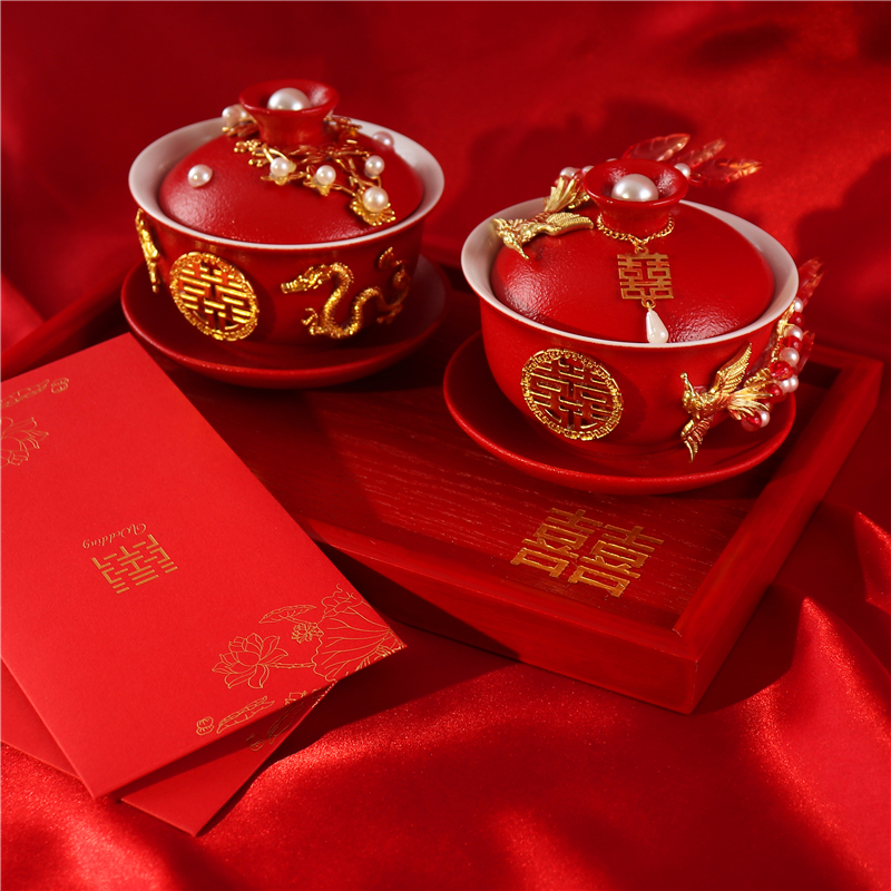 婚礼敬茶杯喜碗礼物定制结婚新娘婚庆对碗改口喜杯送闺蜜手工DIY