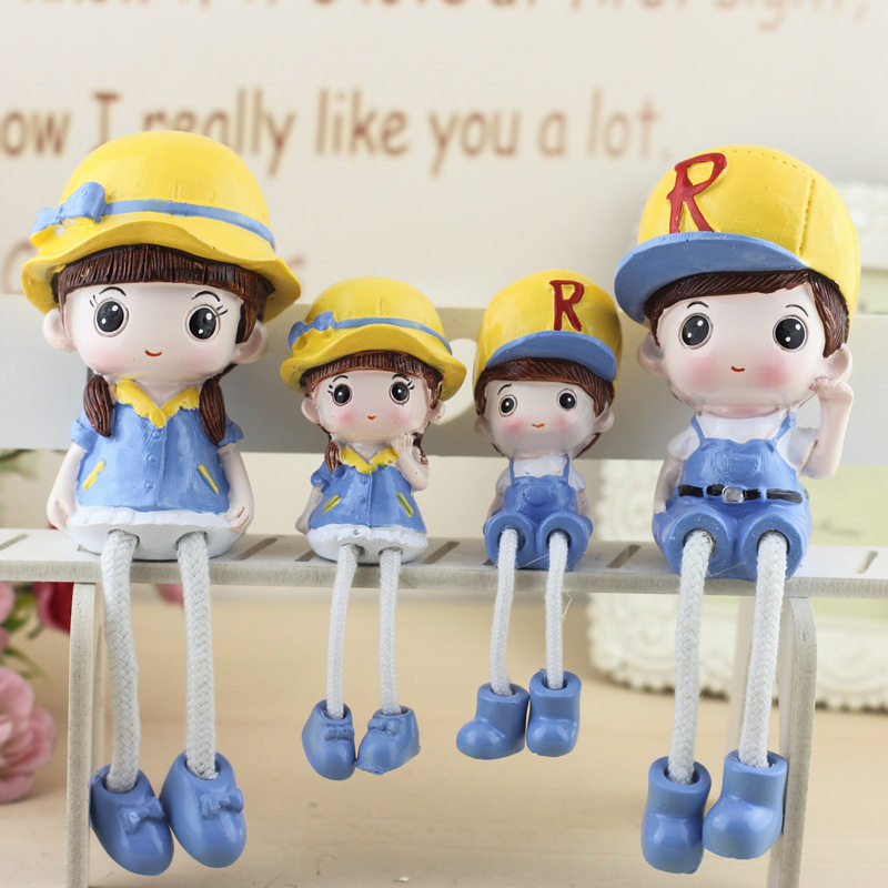 客厅电视柜婚庆装饰礼品摆件卡通吊脚娃娃 创意家居装饰一家四口