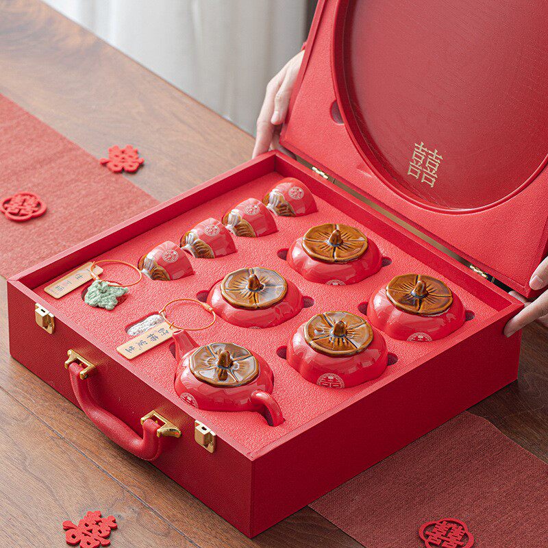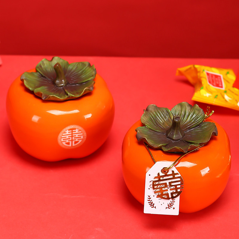 柿子喜糖罐便携随身迷你茶叶罐婚庆伴娘伴手礼摆件小礼品中式礼盒