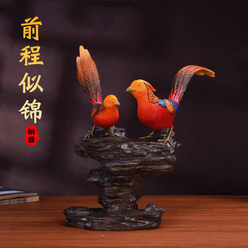 铜红腹锦鸡摆件家用室内装饰《前程似锦》客厅书房婚庆个性礼品