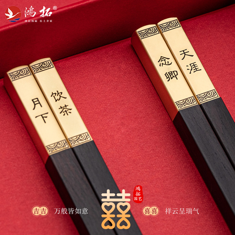 鸿拓中式红新结婚礼筷子礼盒装送礼婚庆传统礼品筷红木喜对筷情侣