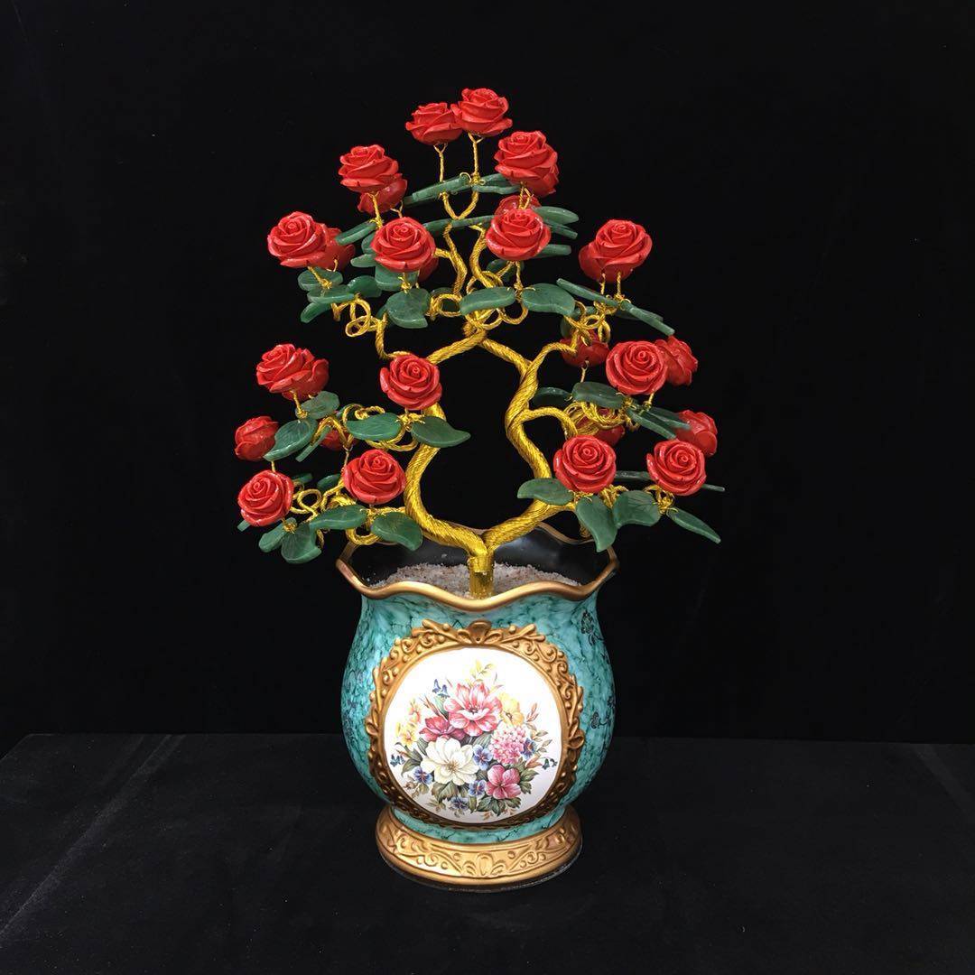 玫瑰花招财树摆件经典葫芦款高档家居办公装饰品婚庆乔迁开业礼品