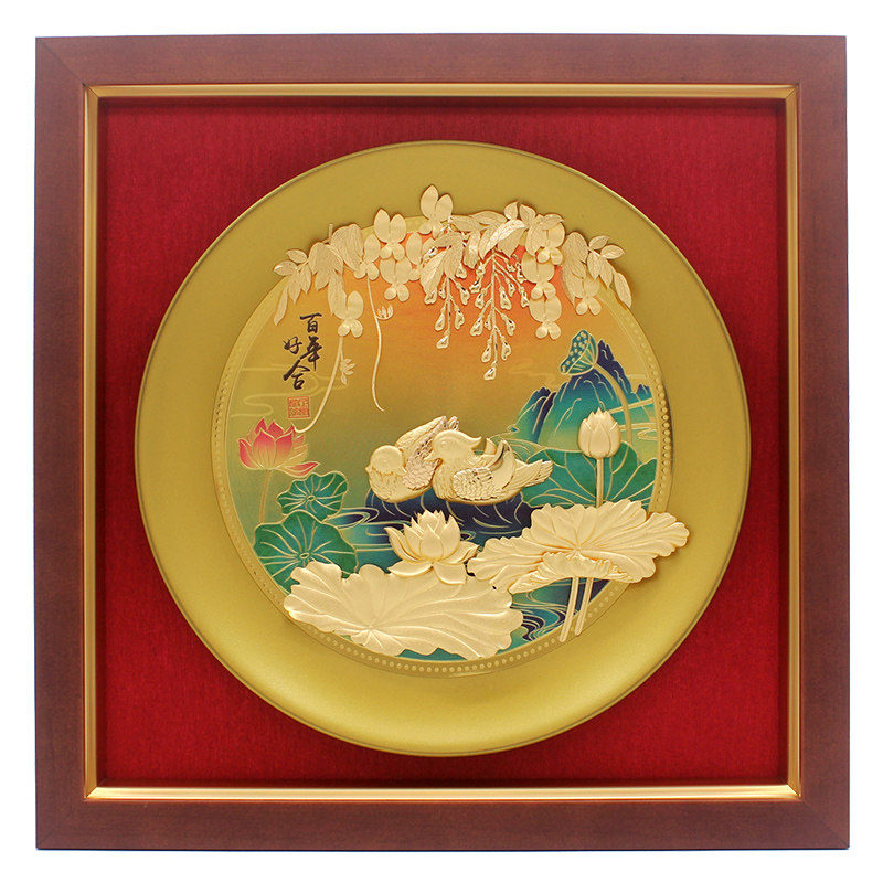 结婚婚庆金婚纪念鸳鸯金箔画百年好合创意实用新婚礼物送新人朋友