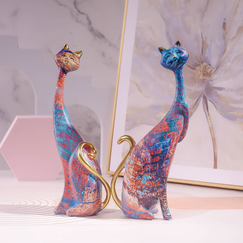 轻奢水转印猫咪摆件创意艺术高级感软装情侣对猫现代可爱婚庆礼品