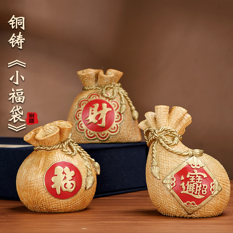 铜铸福袋钱袋全铜聚宝盆摆件婚庆送礼工艺品家用卧室礼品装镇纸