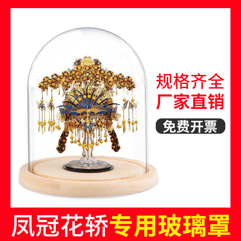 现货凤冠花轿DIY抖音专用永生花玻璃罩婚庆礼品展示盒 摆件防尘罩