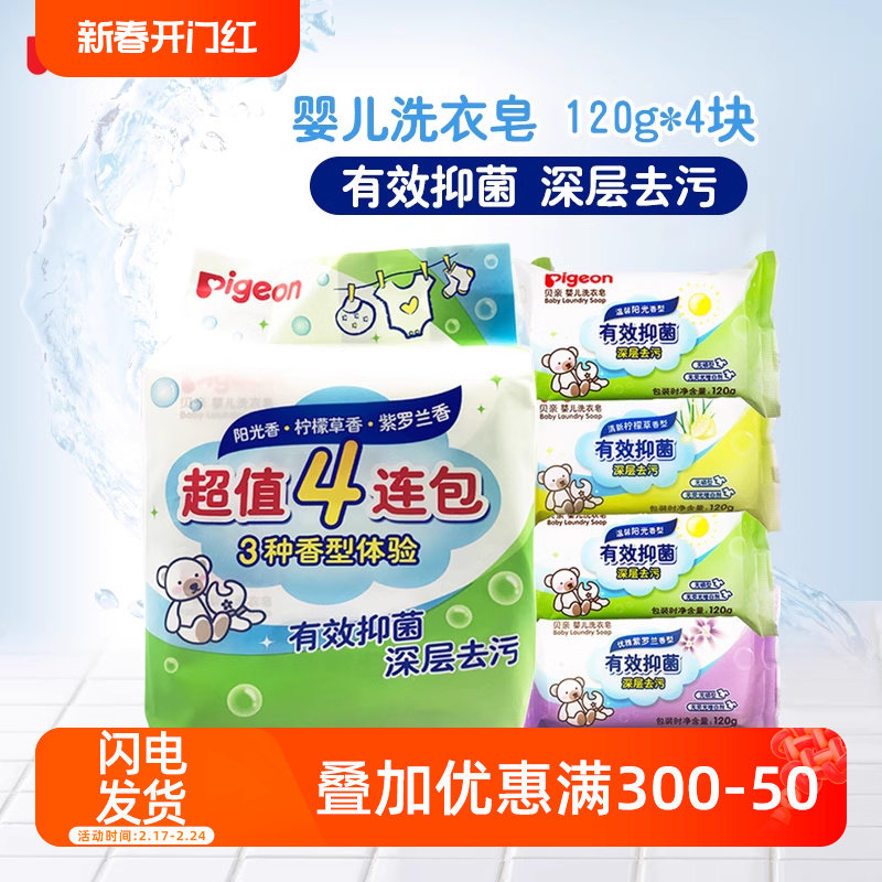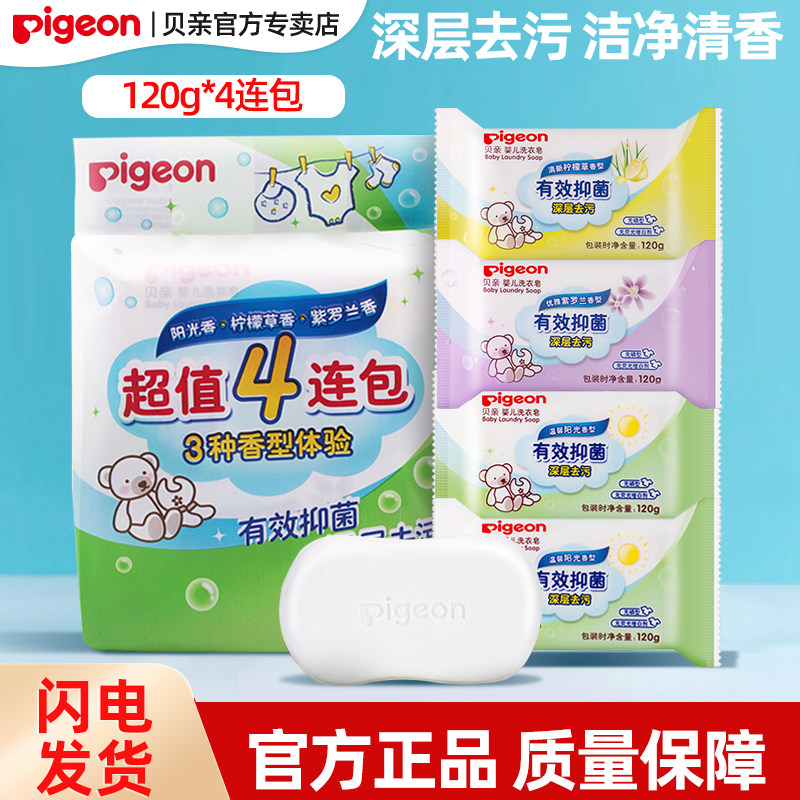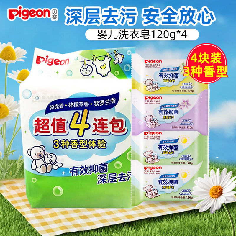 贝亲抑菌洗衣皂儿童内衣皂婴儿肥皂新生宝宝香皂尿布皂120g*4连包