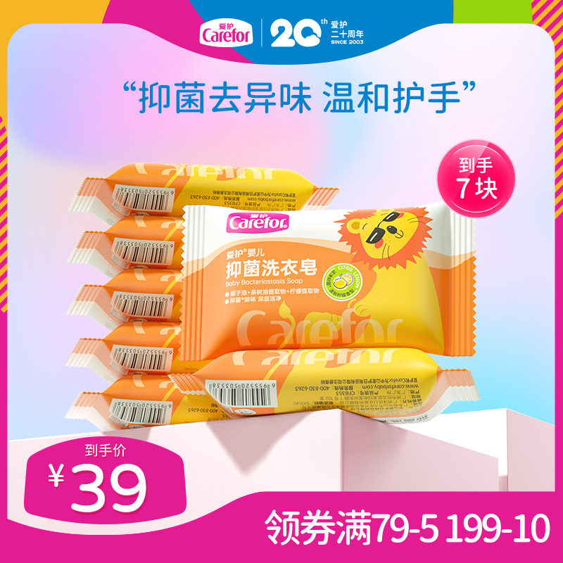 爱护婴儿洗衣皂新生宝宝专用婴幼儿童肥皂内衣尿布去渍抑菌7个装