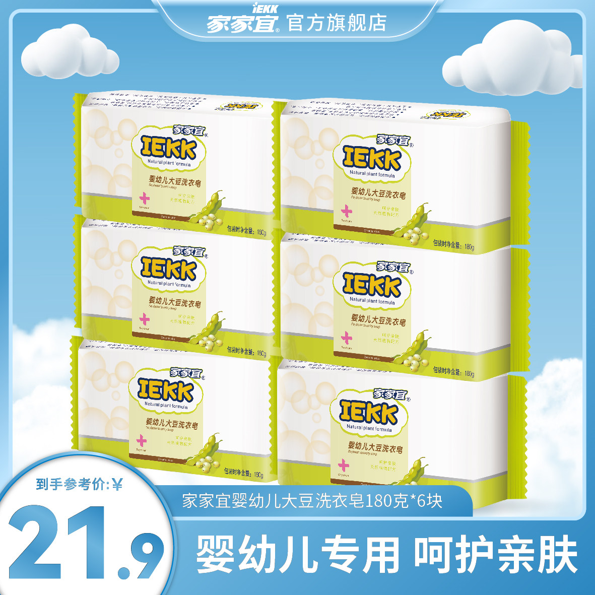 家家宜 婴儿洗衣皂180g*6块宝宝专用尿布肥皂儿童婴幼儿去渍