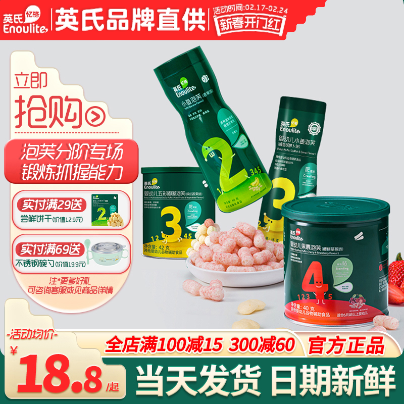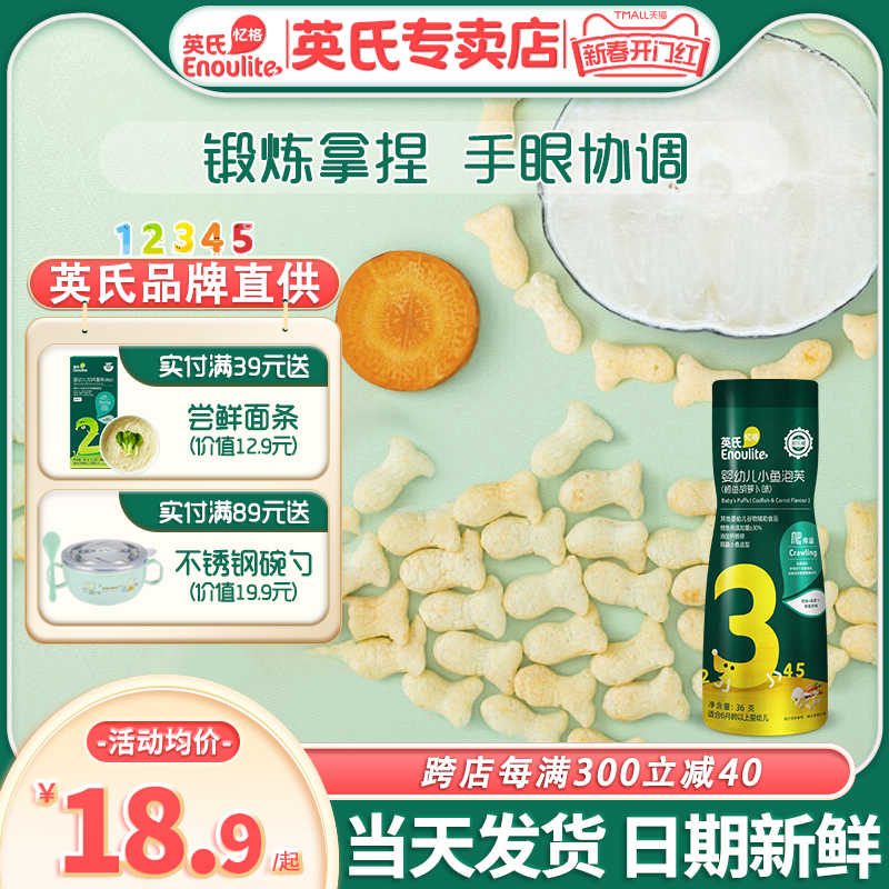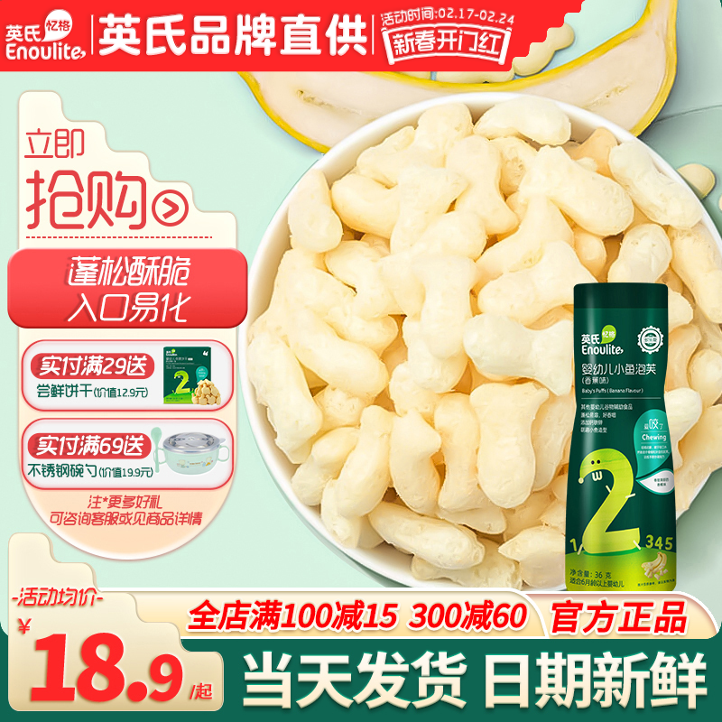 英氏小鱼泡芙宝宝零食无添加盐英式婴儿小鱼泡芙旗舰店婴幼儿辅食