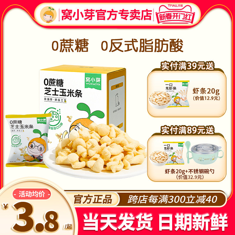 窝小芽芝士玉米条爆米花玉米卷零食儿童窝小牙旗舰送宝宝婴儿辅食