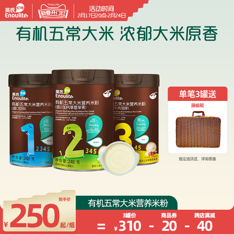 英氏有机五常大米营养米粉 婴儿辅食宝宝高铁米糊3罐