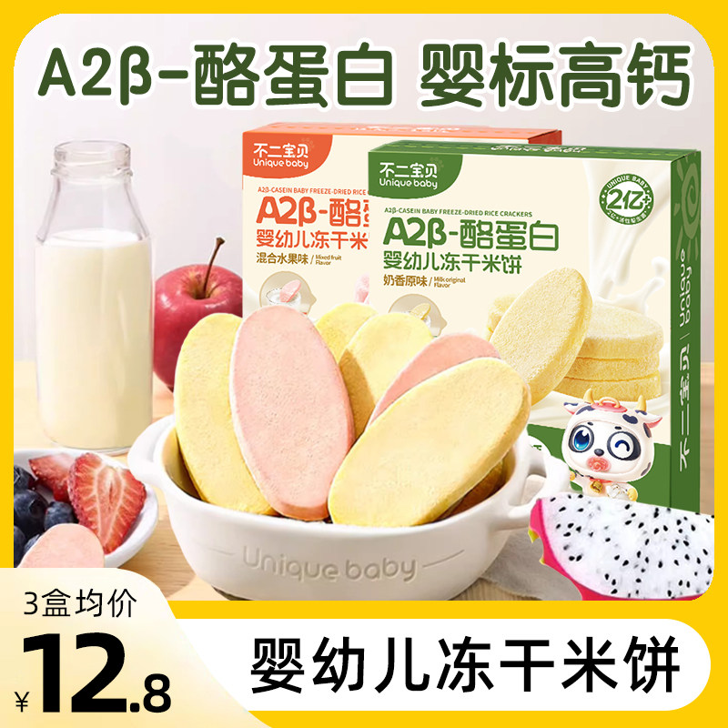 不二宝贝冻干米饼婴儿6个月宝宝零食无添加辅食磨牙棒溶豆饼干