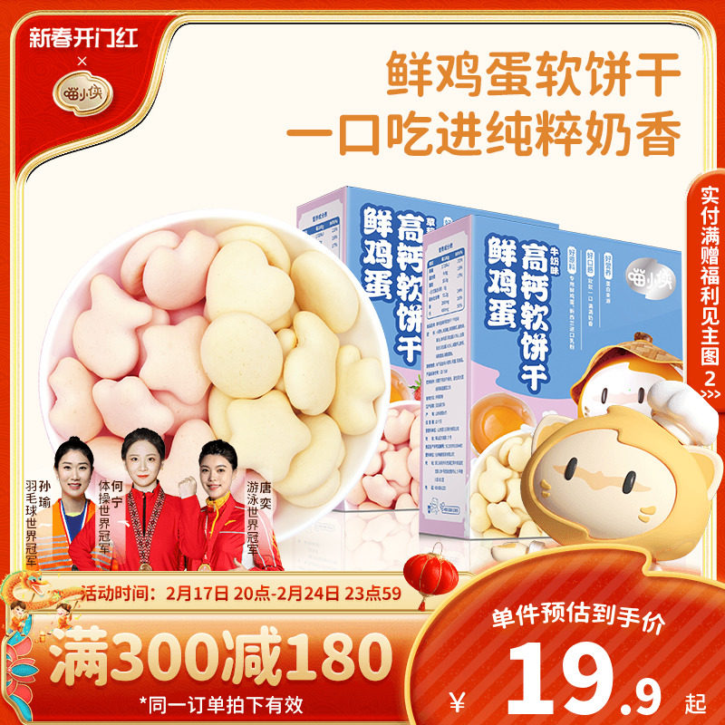 喵小侠鲜鸡蛋高钙营养儿童软饼干小零食,送宝宝婴儿幼儿辅食食谱