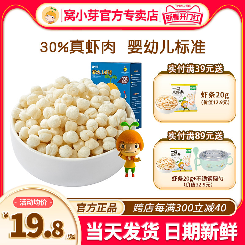窝小芽虾球泡芙辅食婴儿宝宝零食无添加食盐窝小牙虾球旗舰店易化