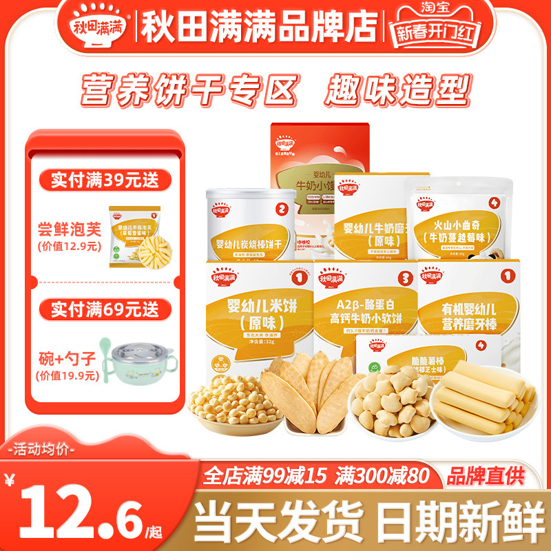 秋田满满米饼小馒头炭烧磨牙棒曲奇饼干秋天满满小软饼送婴儿辅食