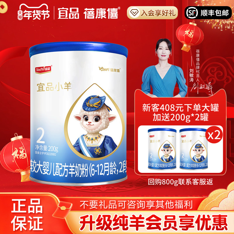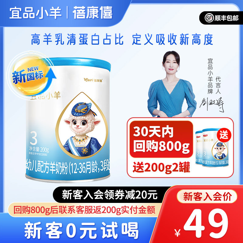 蓓康僖宜品小羊婴幼儿配方羊奶粉3段200g试用装1-3岁宝宝纯羊奶