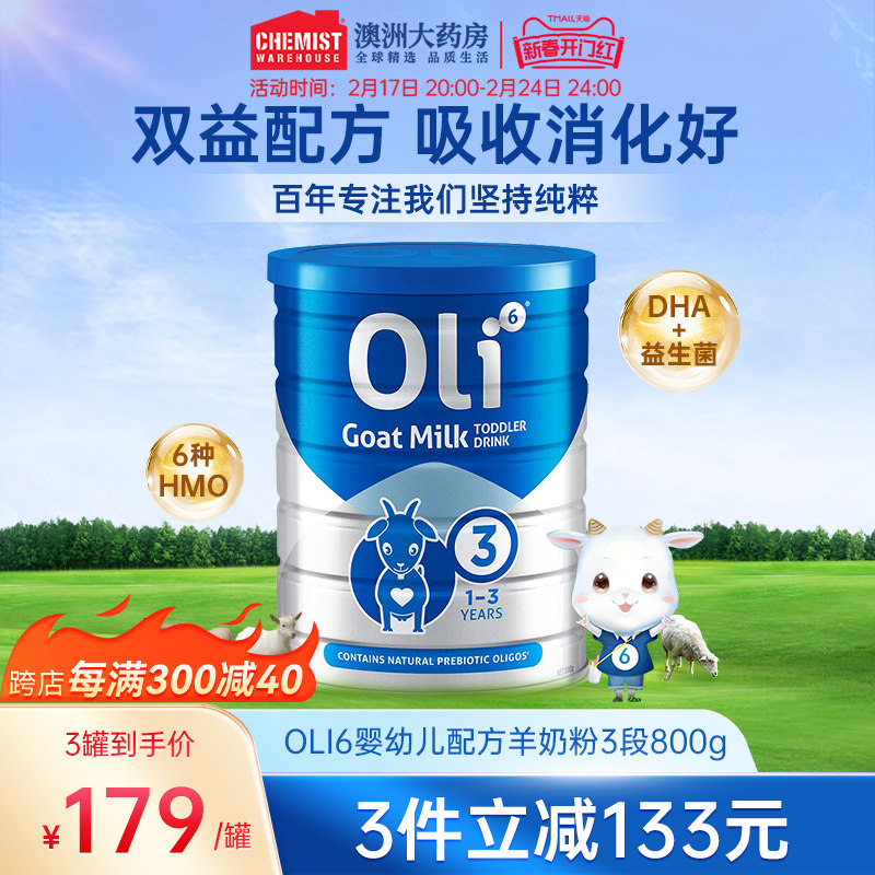 Oli6小羊罐澳洲进口颖睿益生元婴幼儿宝宝HMO配方羊奶粉3段*800g