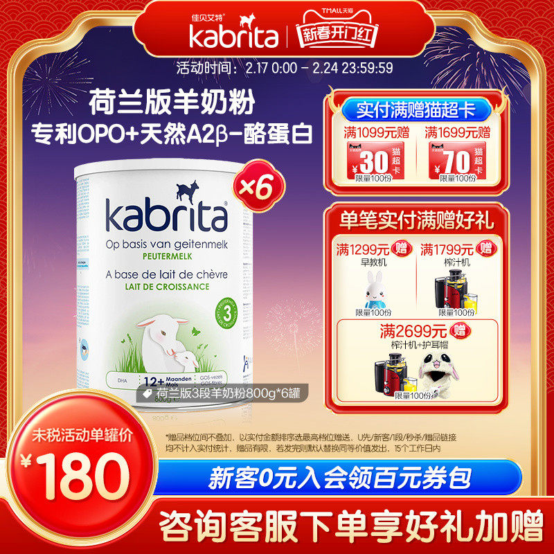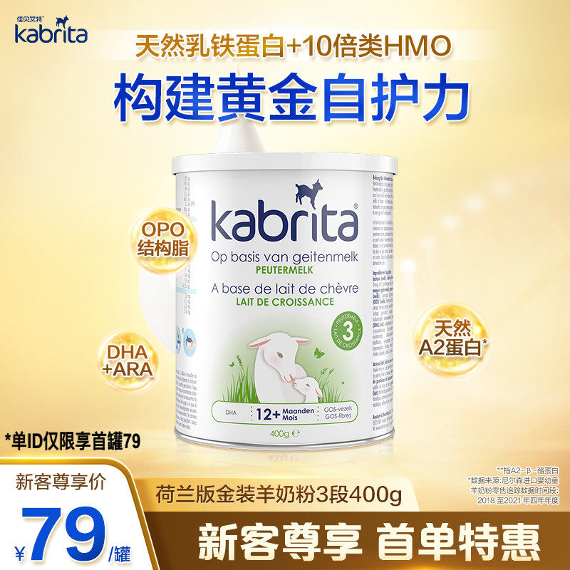 【新客专享】kabrita佳贝艾特荷兰版金装3段400g婴幼儿羊奶粉进口