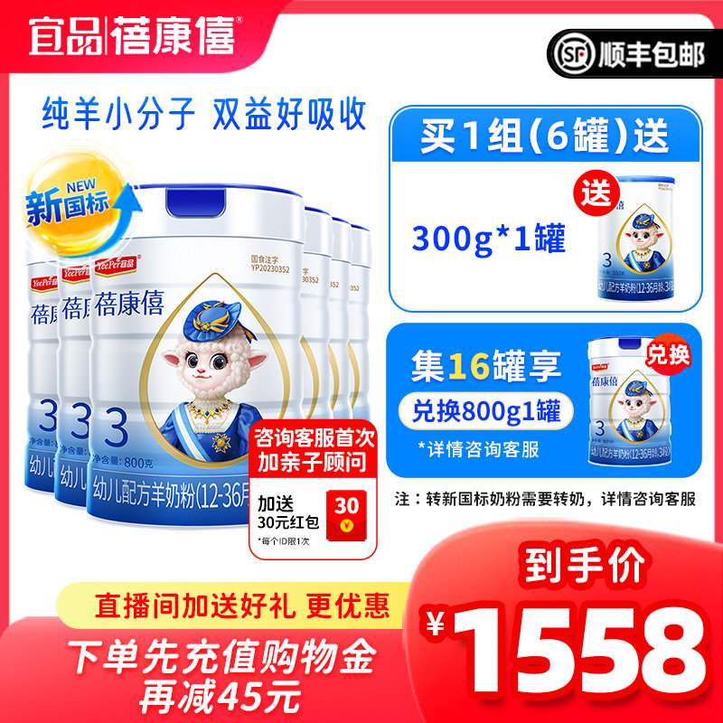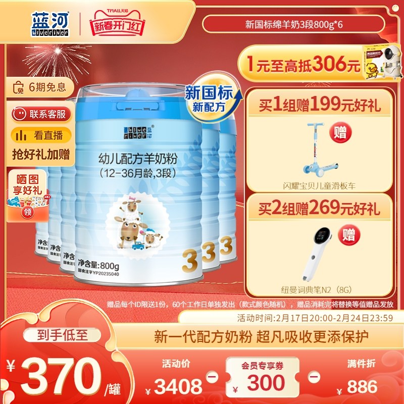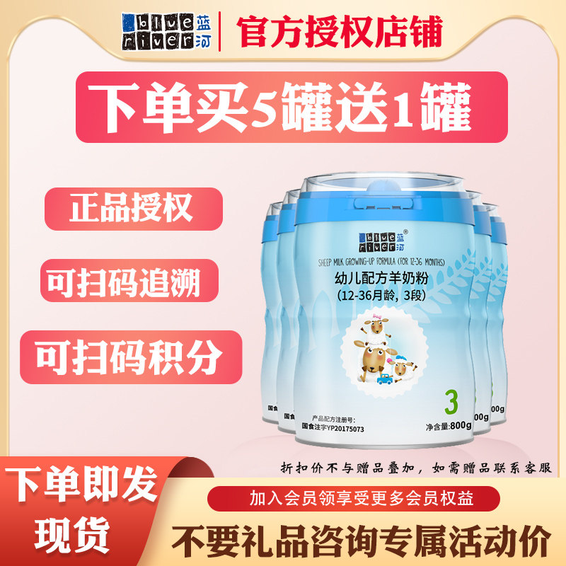 【新国标】蓝河旗舰店绵羊奶3段800g幼儿配方羊奶粉1-3岁6罐装HMO