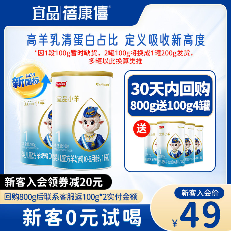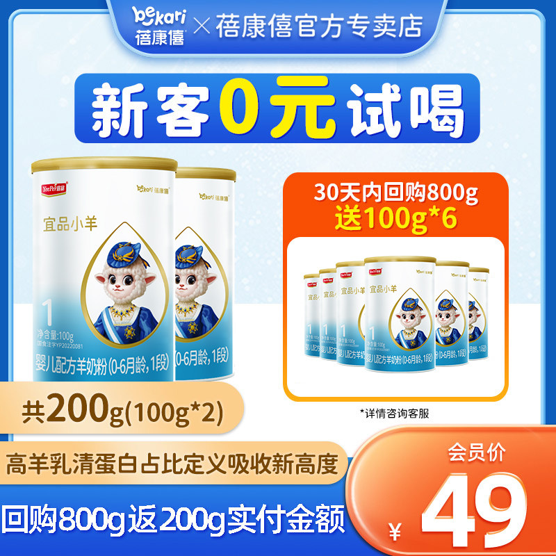 蓓康僖宜品小羊婴幼儿配方羊奶粉1段100g*2新生宝宝试用装0-6个月