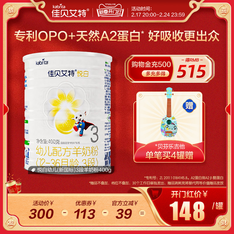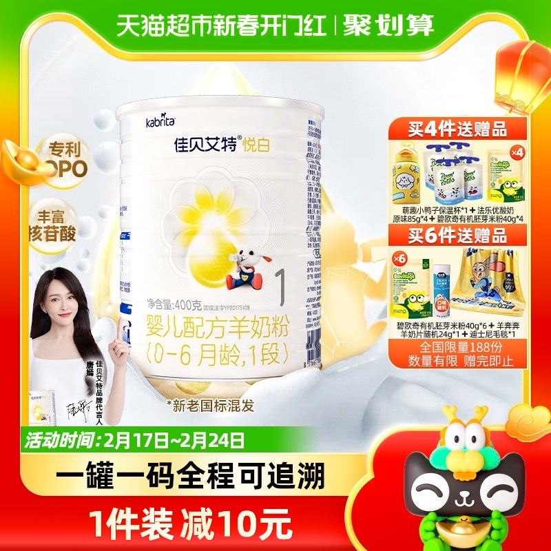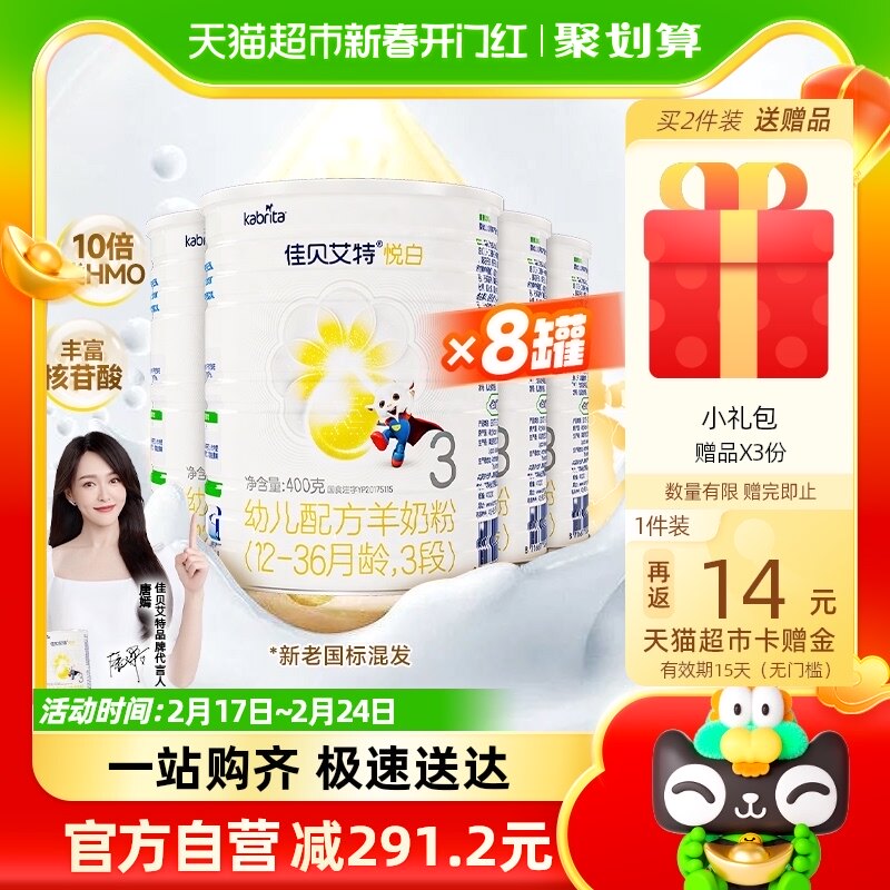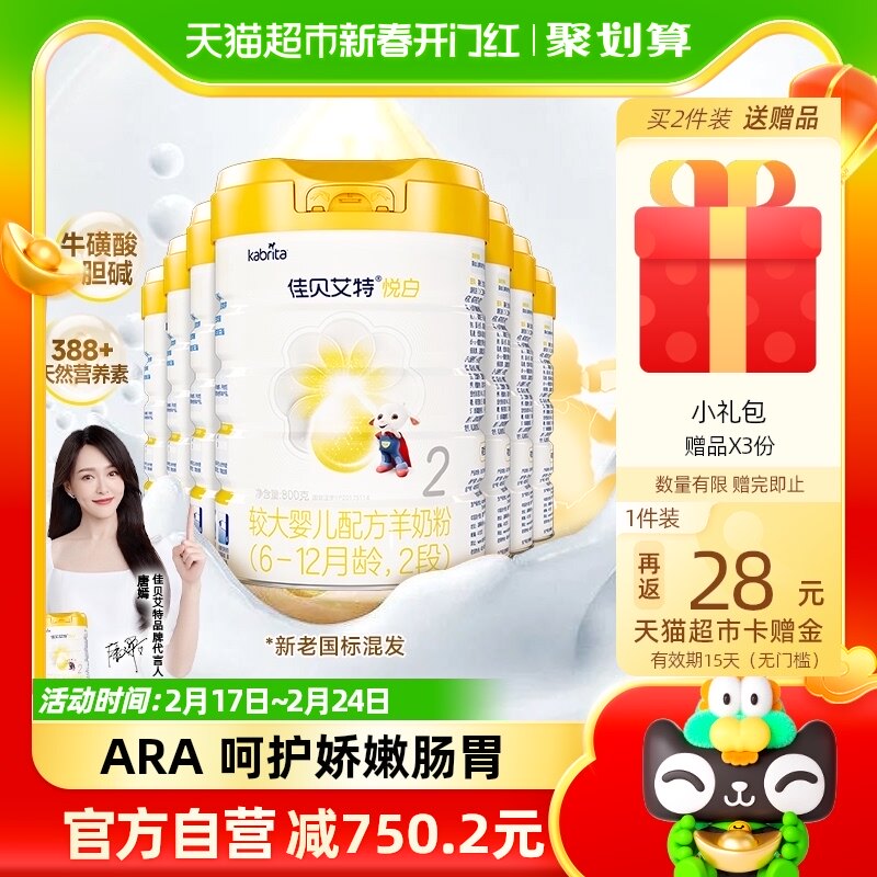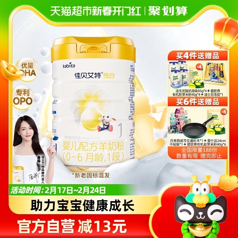 佳贝艾特旗舰店官网悦白婴幼儿奶粉宝宝羊奶粉3段800g*6罐新国标
