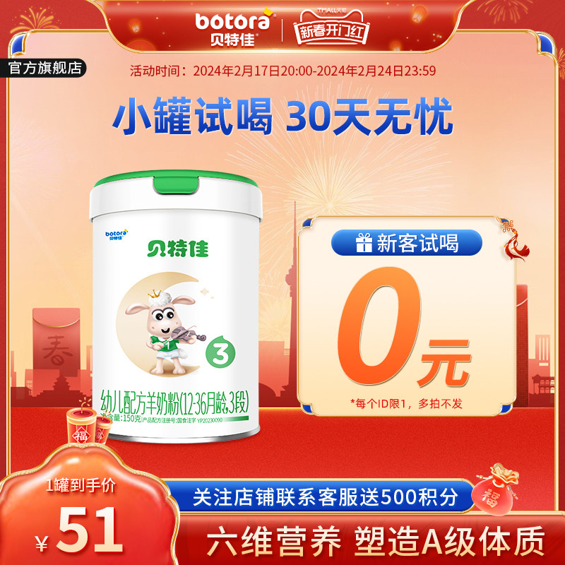 贝特佳旗舰店婴幼儿配方羊奶粉3段150g12-36个月罐装新国标