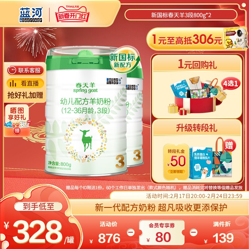 【新国标】蓝河春天羊进口羊奶粉幼儿3段800g*2罐 1-3岁幼儿奶粉