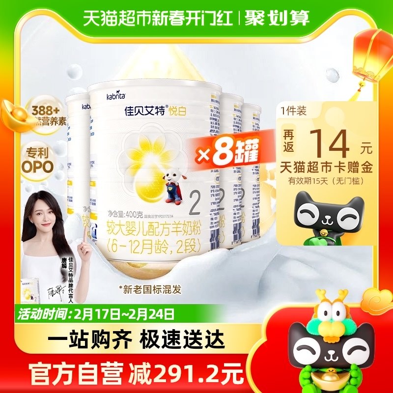 荷兰佳贝艾特羊奶粉2段悦白进口400g*2罐6-12个月婴幼儿配方奶粉
