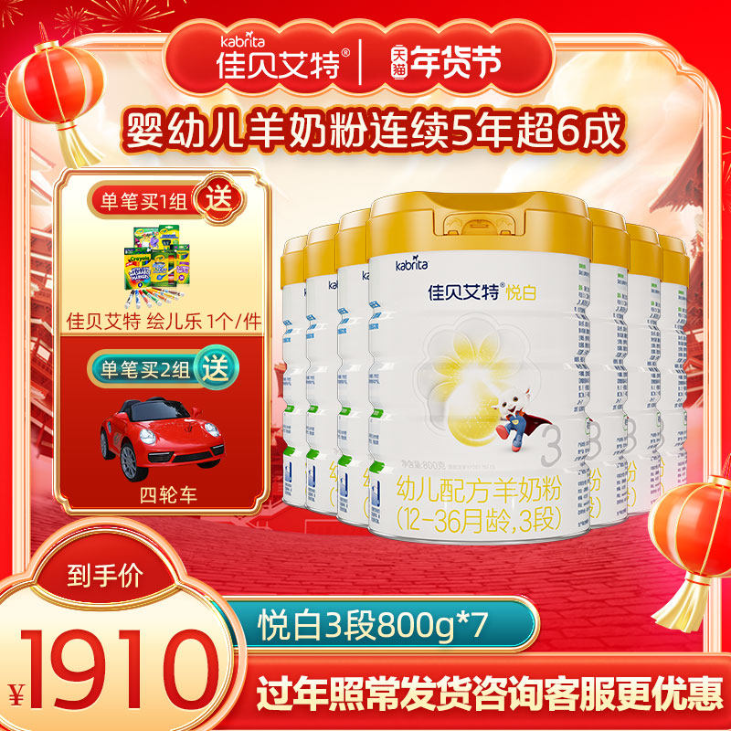 佳贝艾特旗舰店羊奶粉婴儿幼儿奶粉宝宝悦白3段800g7罐新国标