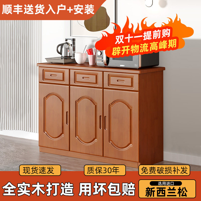 全实木餐边柜松木碗柜储物柜现代简约客厅橱柜茶水柜厨房收纳柜子