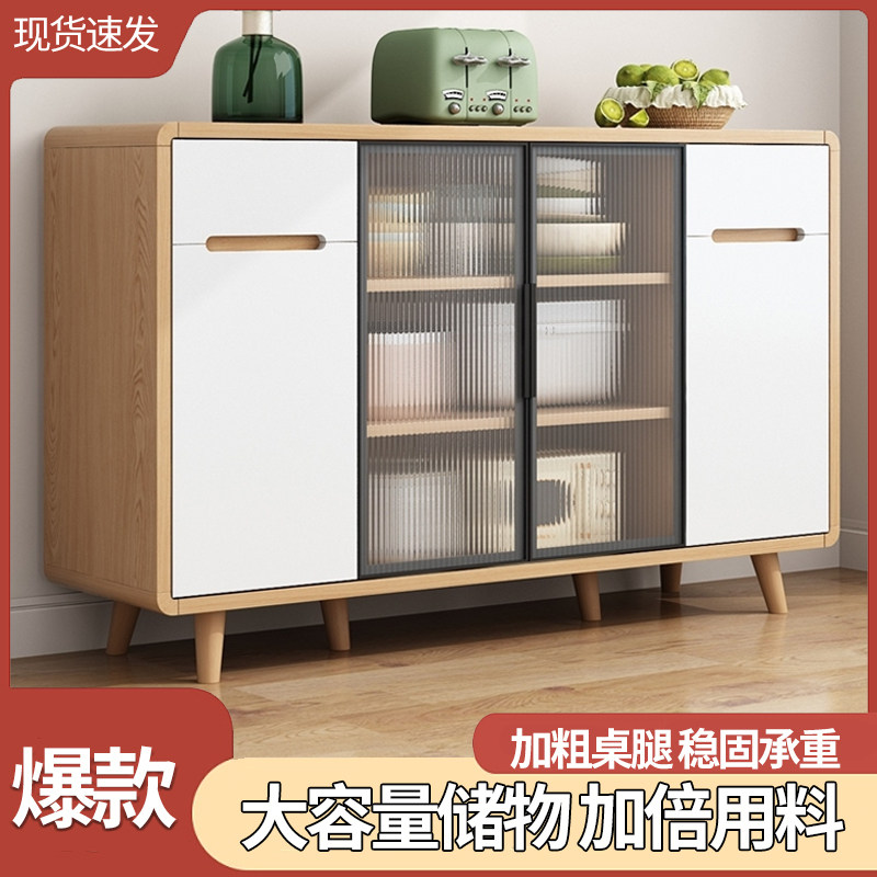 餐边柜家用储物柜厨房橱柜置物柜实木客厅靠墙柜子多功能收纳带门