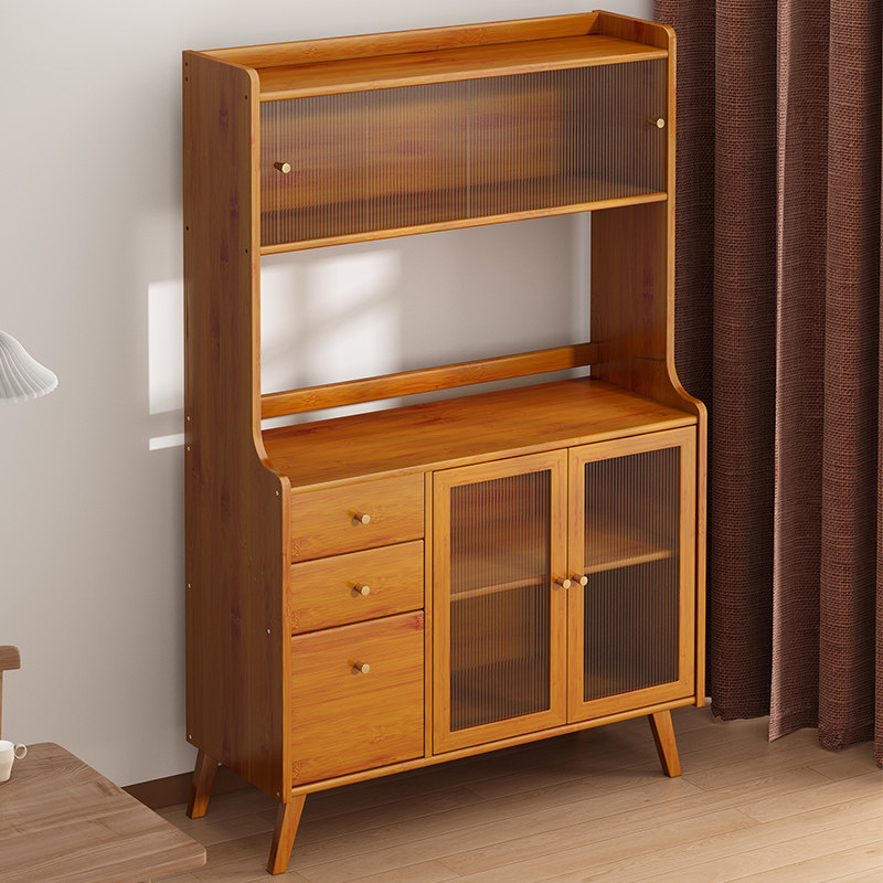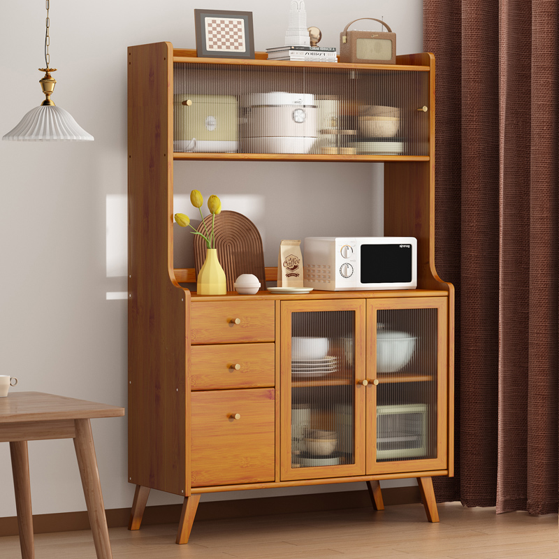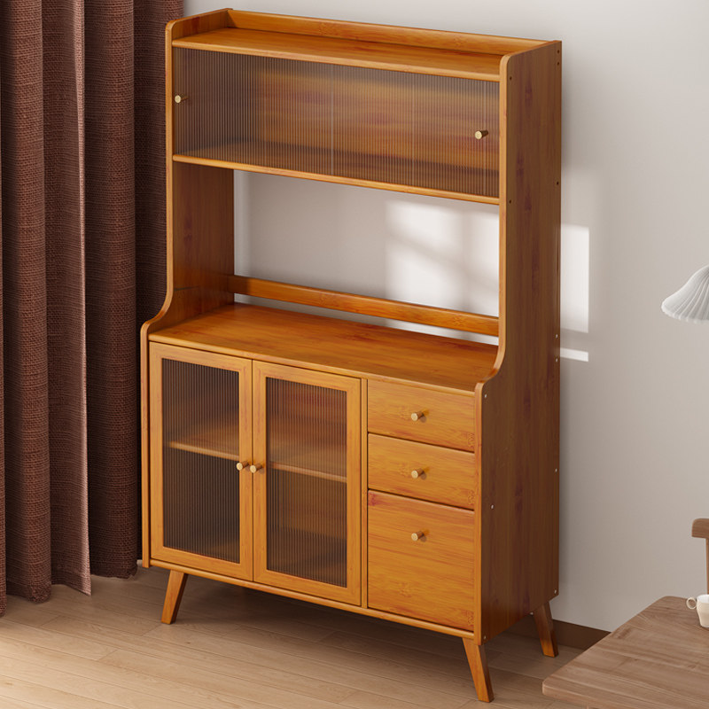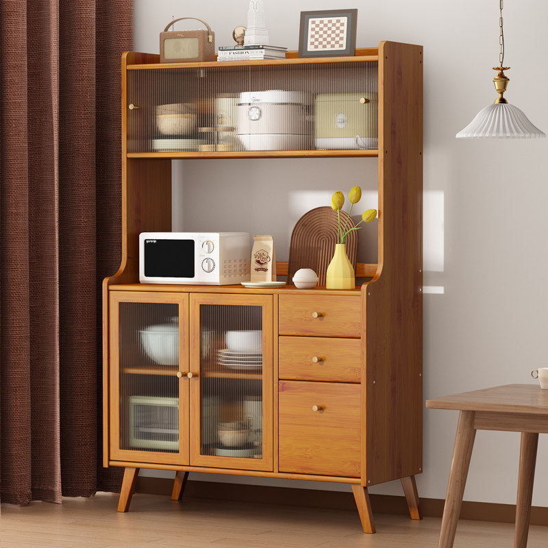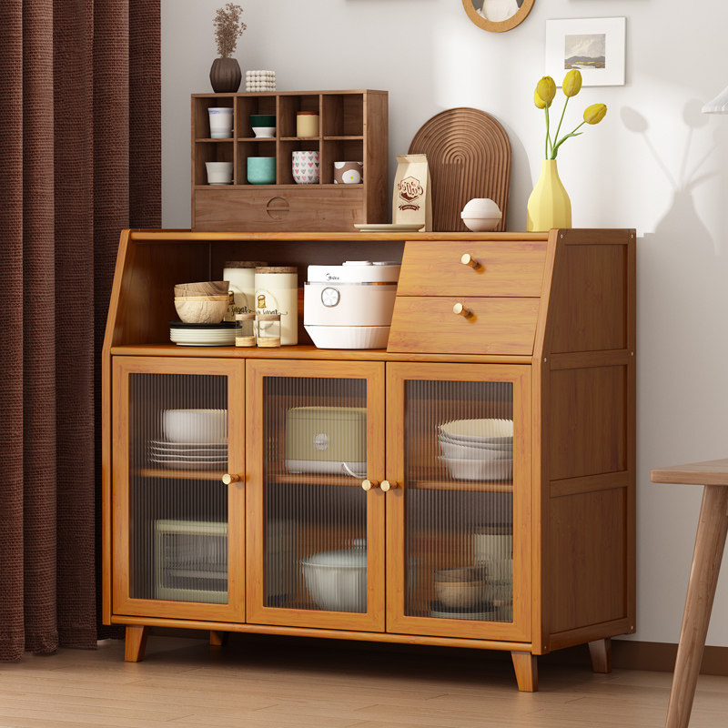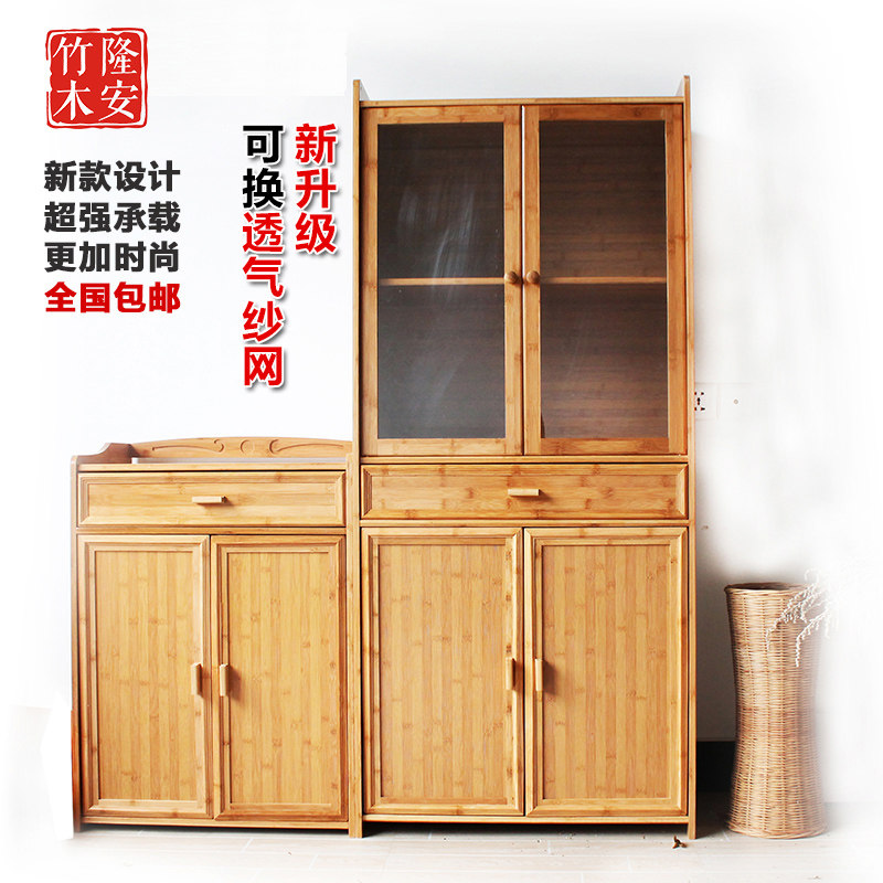 楠竹餐边柜碗柜茶水柜厨房碗橱柜实木微波炉柜储物柜阳台收纳柜子