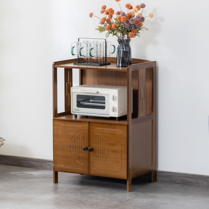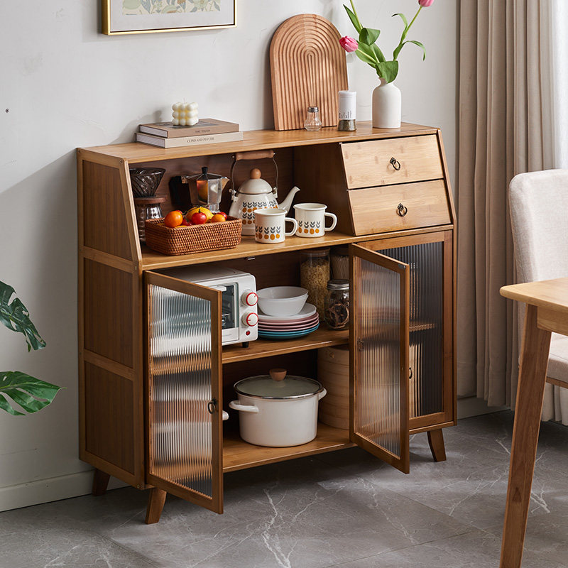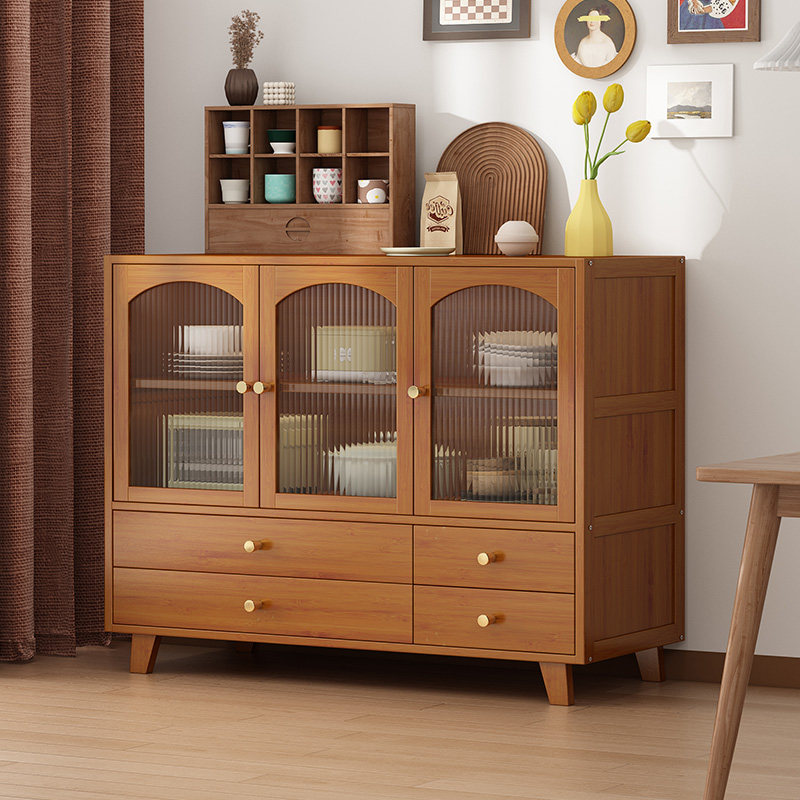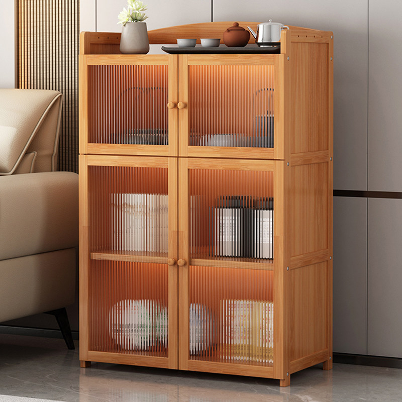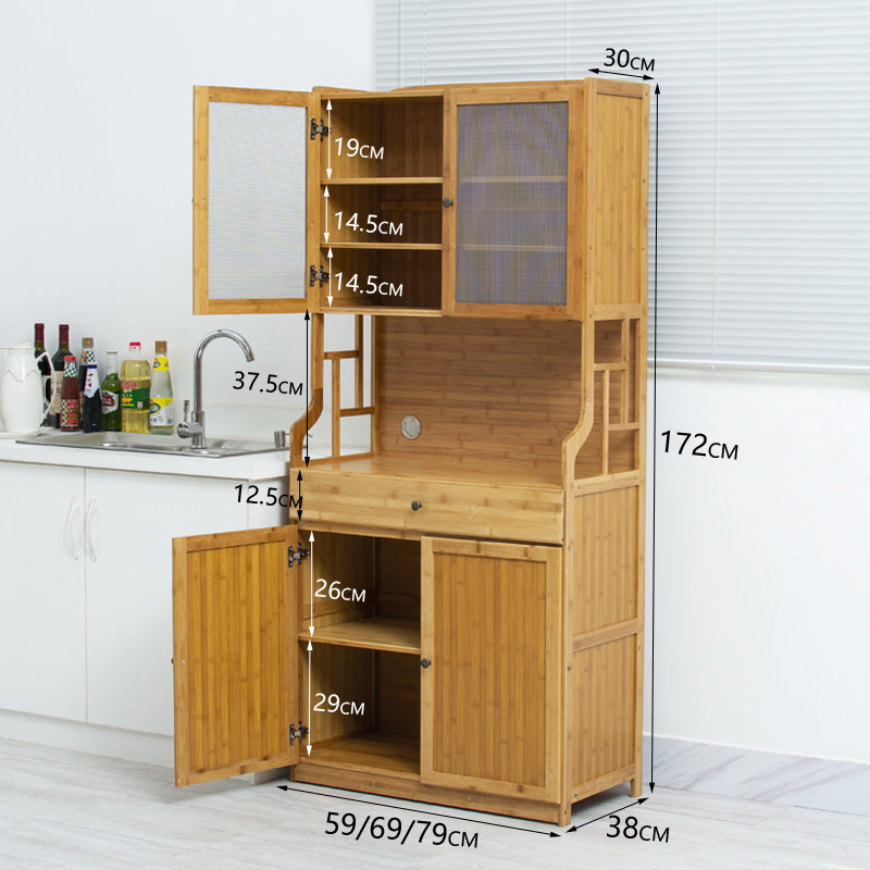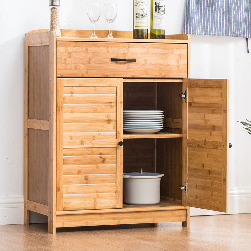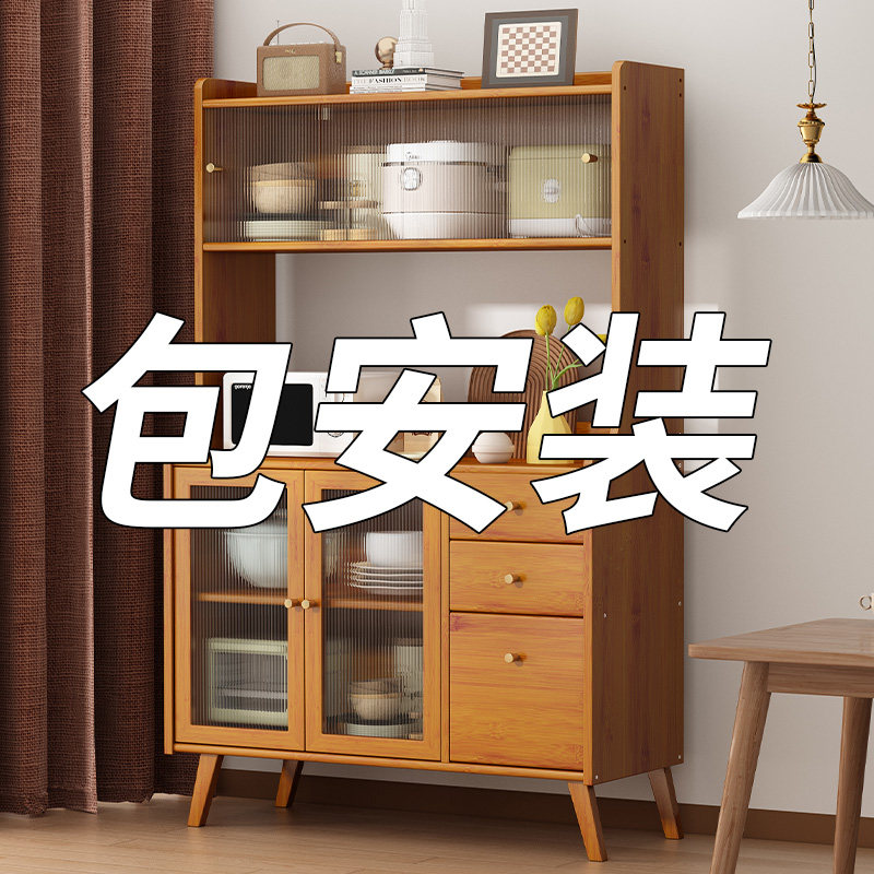 楠竹餐边柜碗柜茶水柜厨房碗橱柜实木微波炉柜储物柜阳台收纳柜子