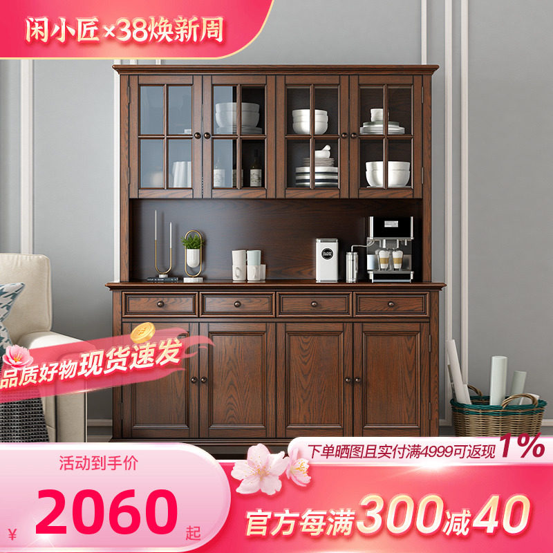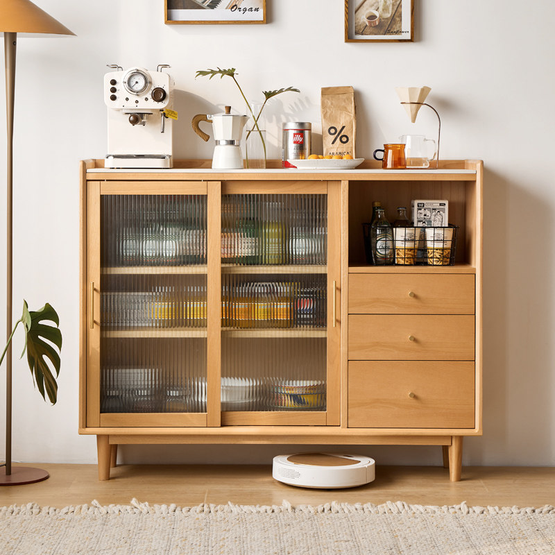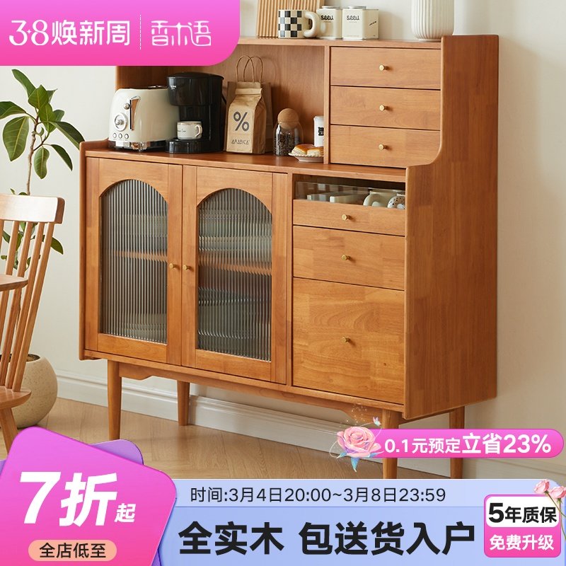 全实木茶水柜厨房置物柜餐边柜家用客厅靠墙收纳碗柜简约现代橱柜