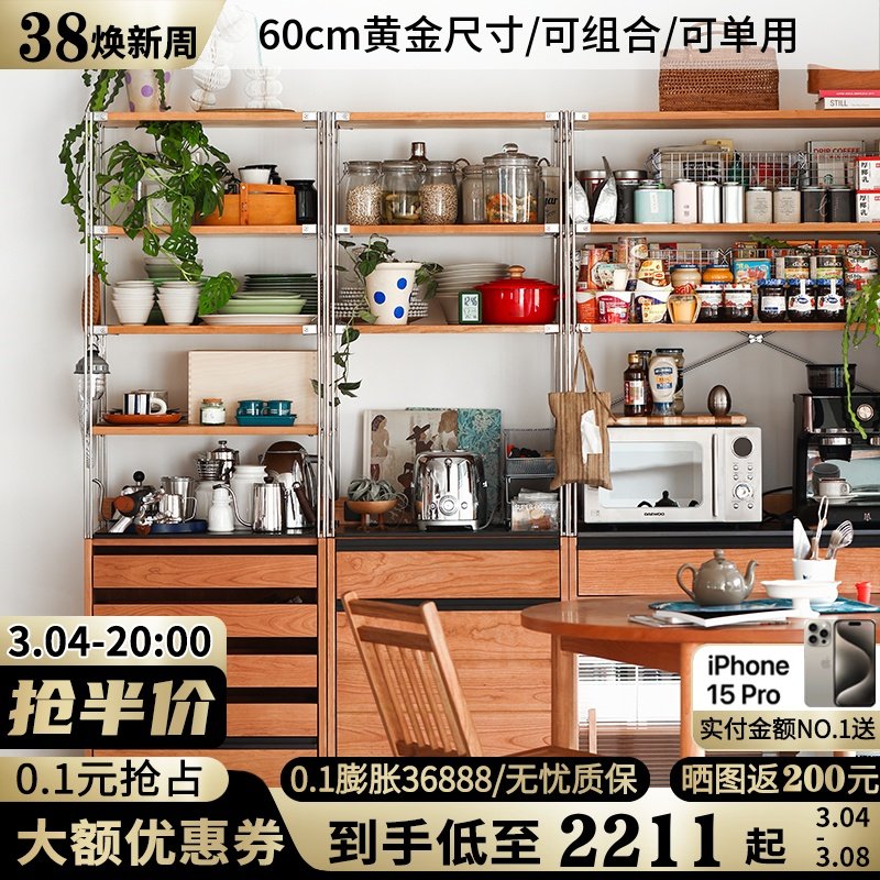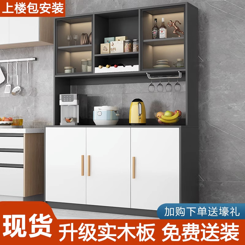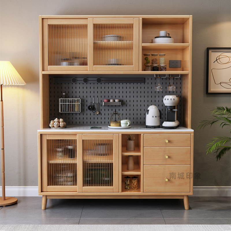 餐边柜家用厨房橱柜收纳柜客厅靠墙一体茶水柜实木简约多层置物架