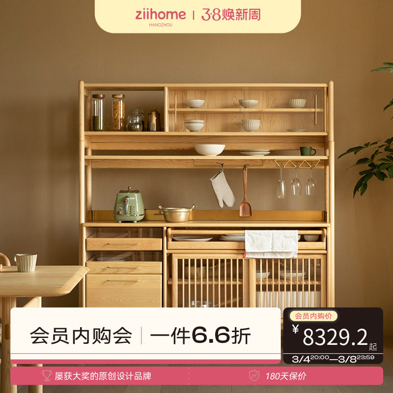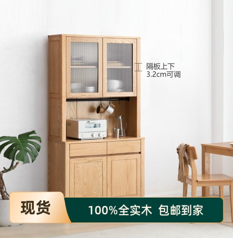 北欧全实木橡木餐边柜酒柜茶水柜碗柜橱柜储物实木多功能人气组合