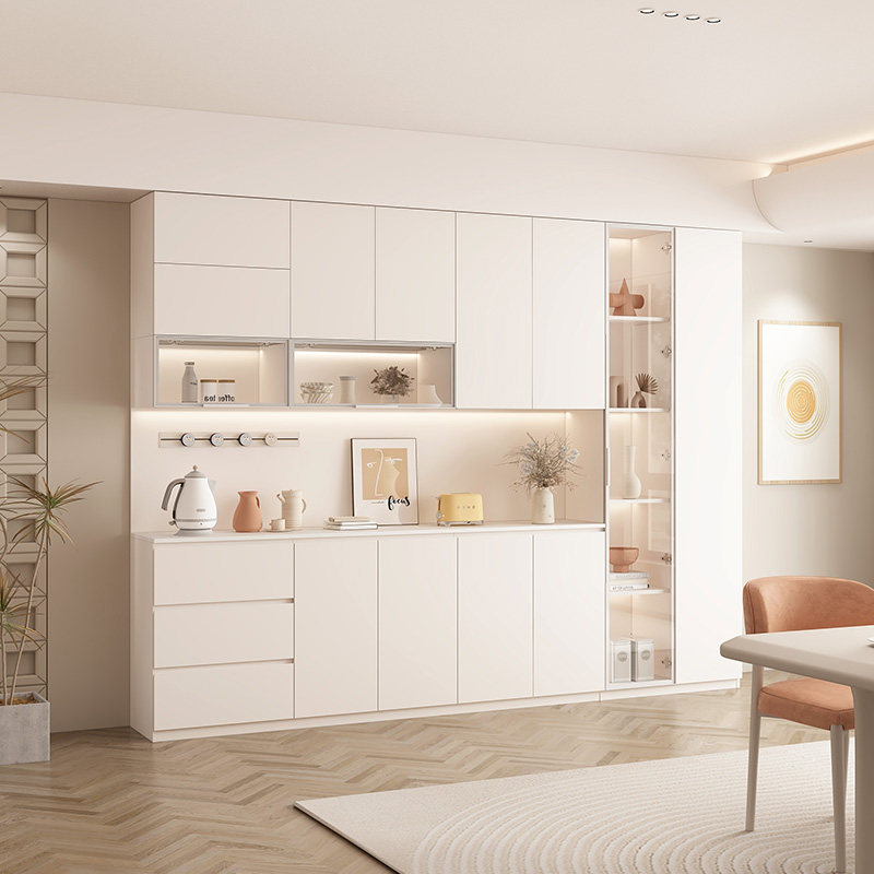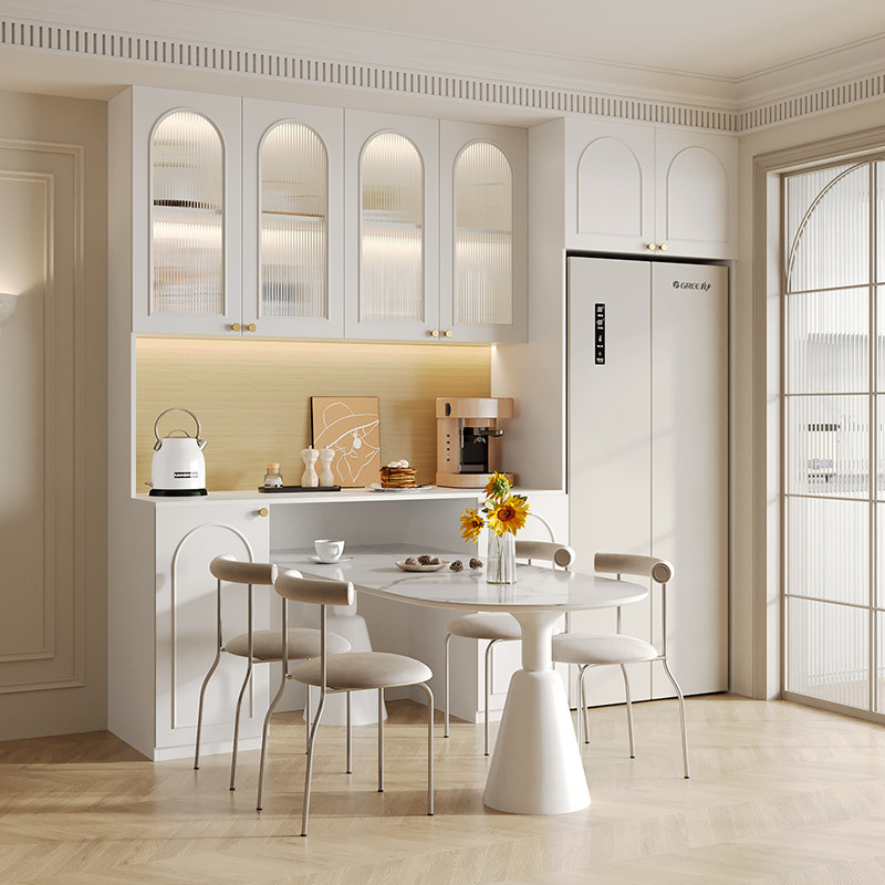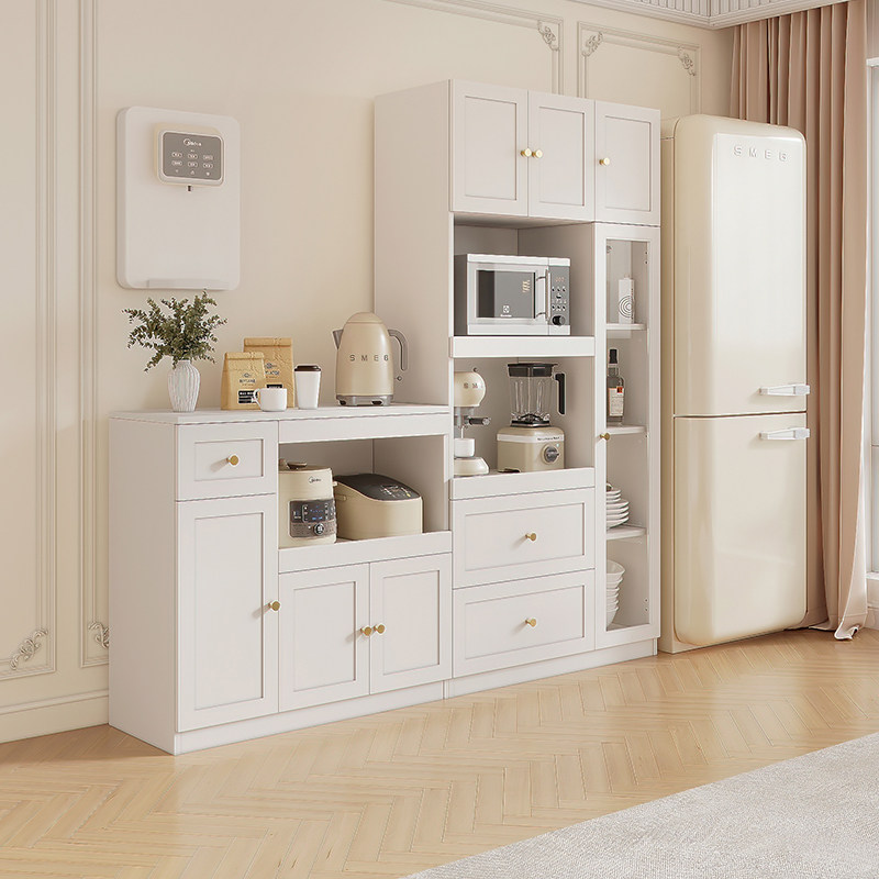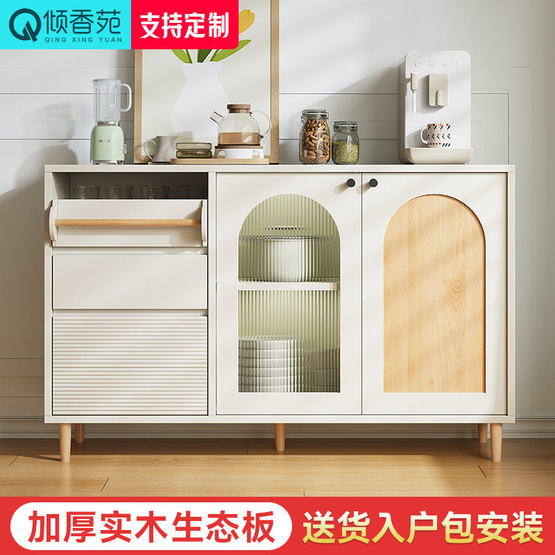 奶油风餐边柜一体靠墙客厅厨房橱柜高柜置物柜酒柜实木轻奢储物柜