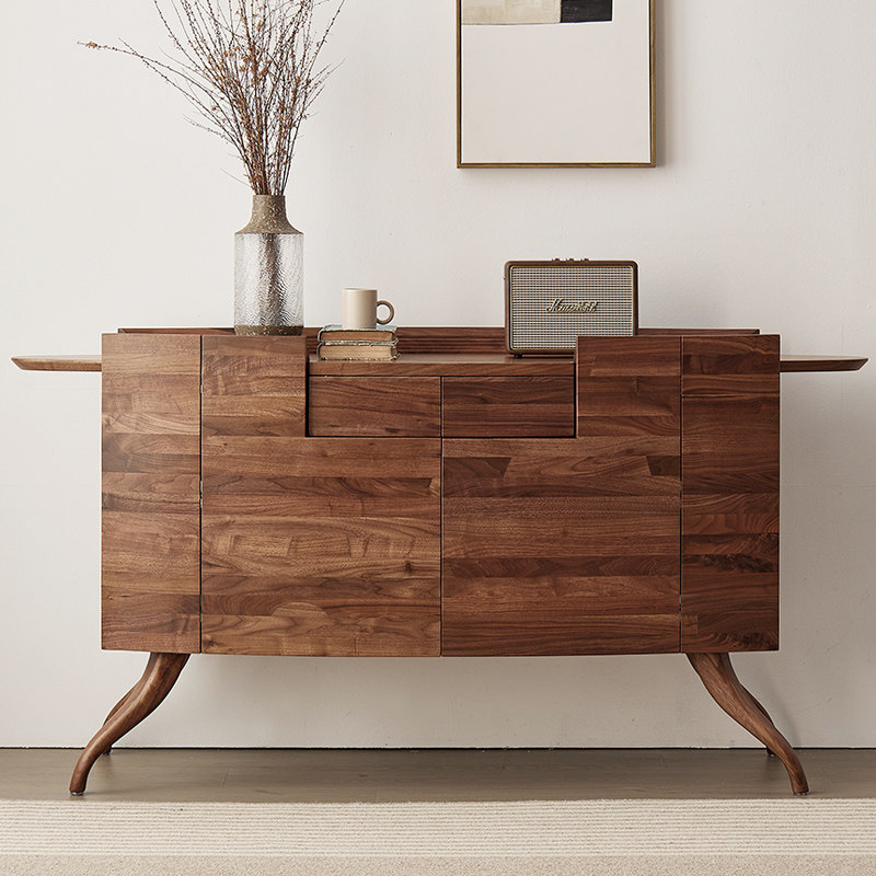 意式极简黑胡桃实木餐边柜设计师储物柜餐厅橱柜客厅展示柜玄关柜