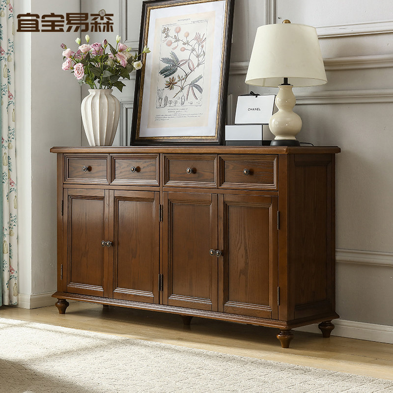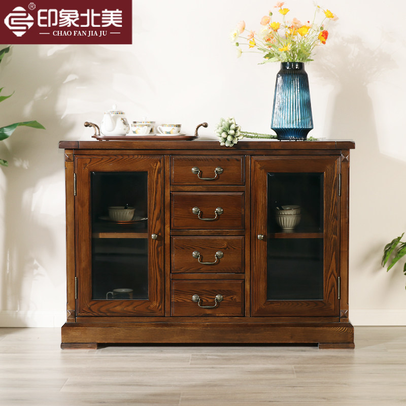 美式实木餐边柜简约靠墙厨房橱柜双门酒柜置物架茶水柜储物柜置物