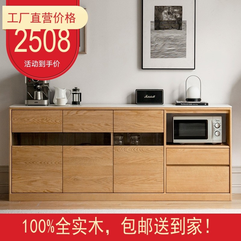 实木岩板餐边柜北欧餐厅橱柜置物柜家用茶水柜橡木简约现代储物柜