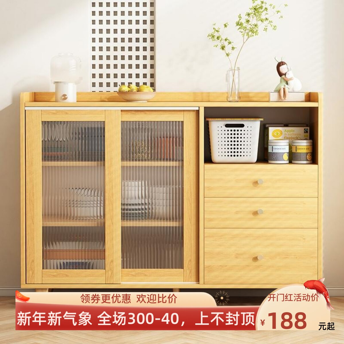 柜子储物柜餐边柜客厅家用收纳柜实木柜厨房橱柜靠墙置物柜茶水柜