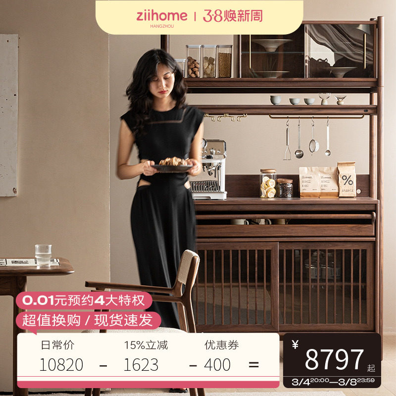 木织餐边柜1.25m 致家家居 |侘寂风实木岩板餐边柜一体靠墙橱柜