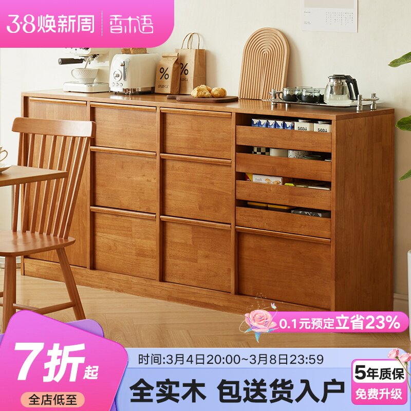 实木餐边柜现代简约客厅储物柜厨房茶水柜橱柜北欧收纳柜一体靠墙
