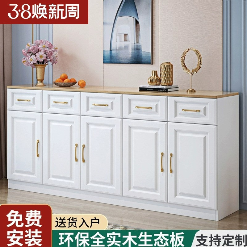 实木餐边柜简约现代客厅边柜家用橱柜加长白色柜子防晒阳台储物柜