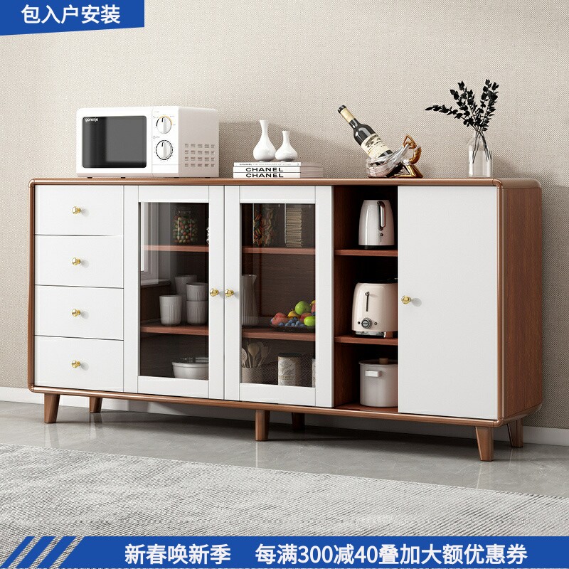 餐边柜家用厨房橱柜实木储物柜客厅靠墙一体茶水柜多功能置物收纳
