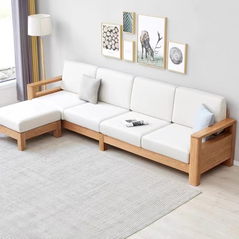北欧现代简约白蜡木实木沙发客厅小户型冬夏两用贵妃转角原木家具